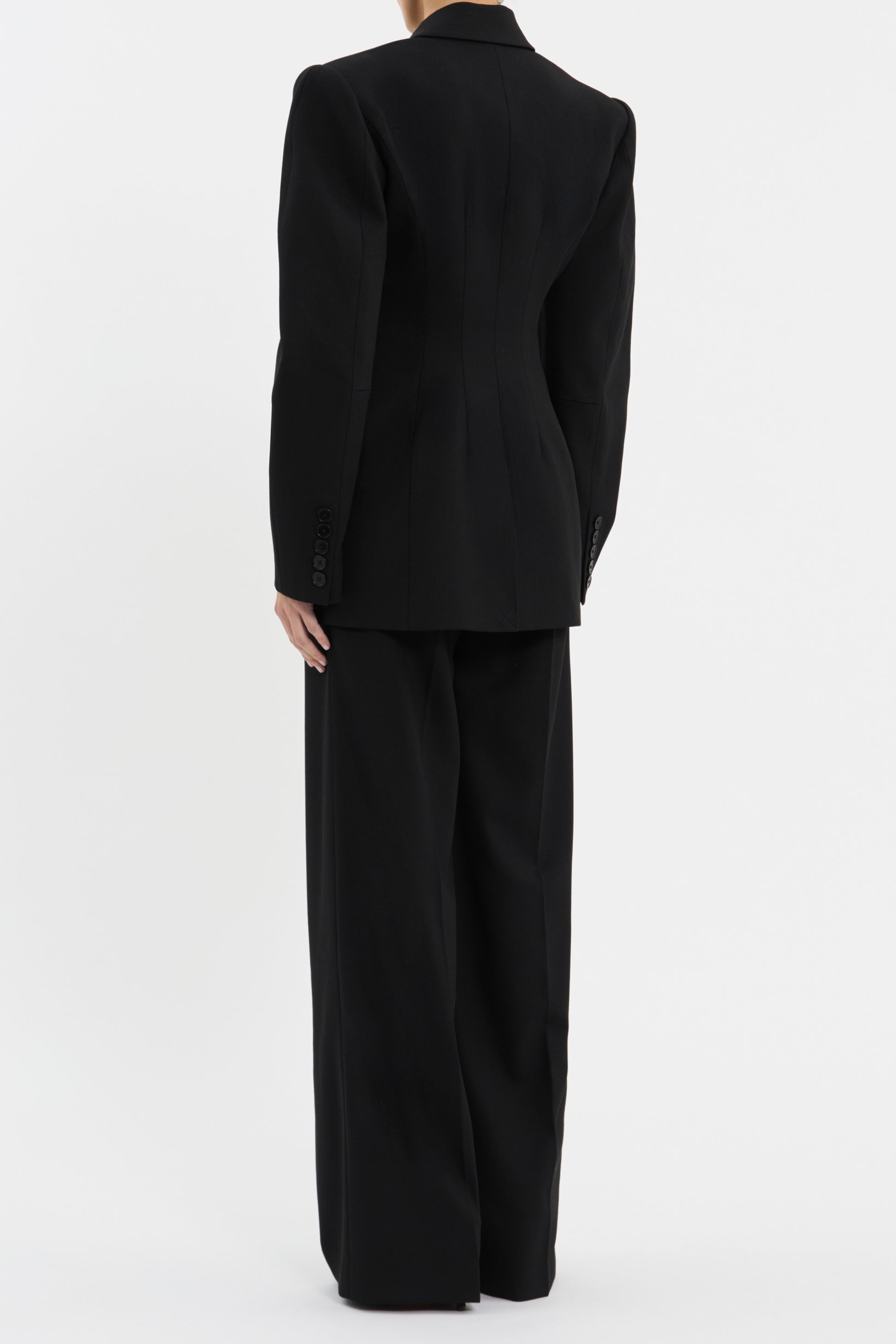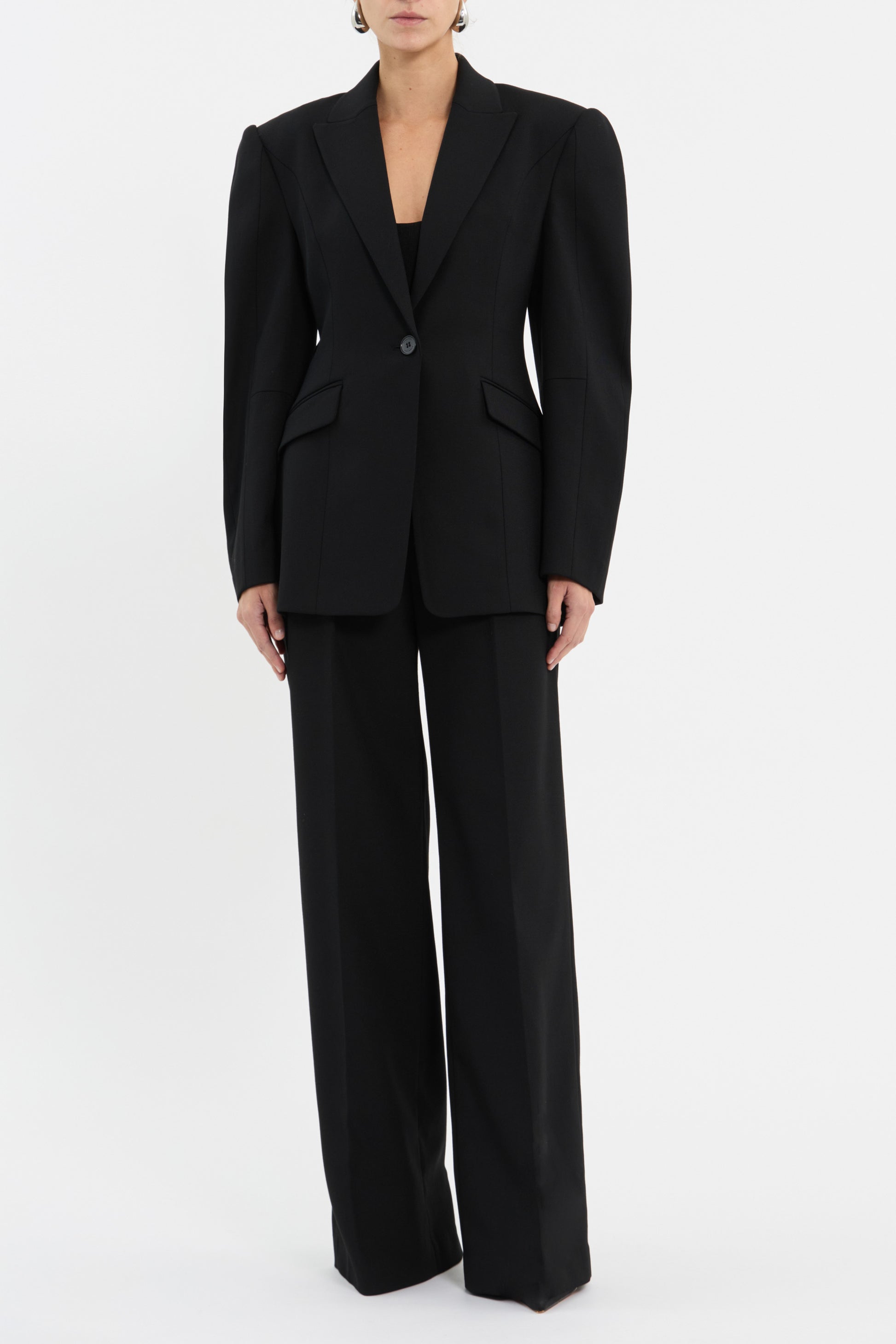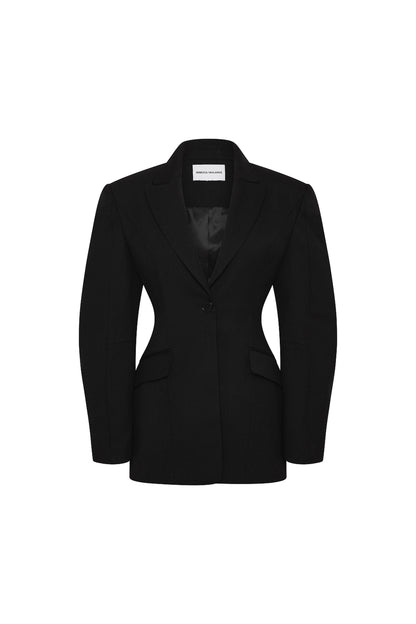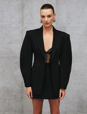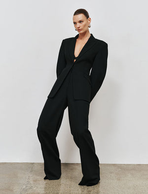 The Finley Blazer in black infuses elevated sophistication and modern design. Expertly tailored, the cocoon long sleeves and single breasted design seamlessly shape a striking silhouette, complemented with shoulder pads to enhance the flattering fit. Jet pockets and a vent at the back offer convenience, whilst lining ensures utmost comfort. Polished and sleek, this blazer is the ultimate styling piece that pairs perfectly with our matching Finley Pant.