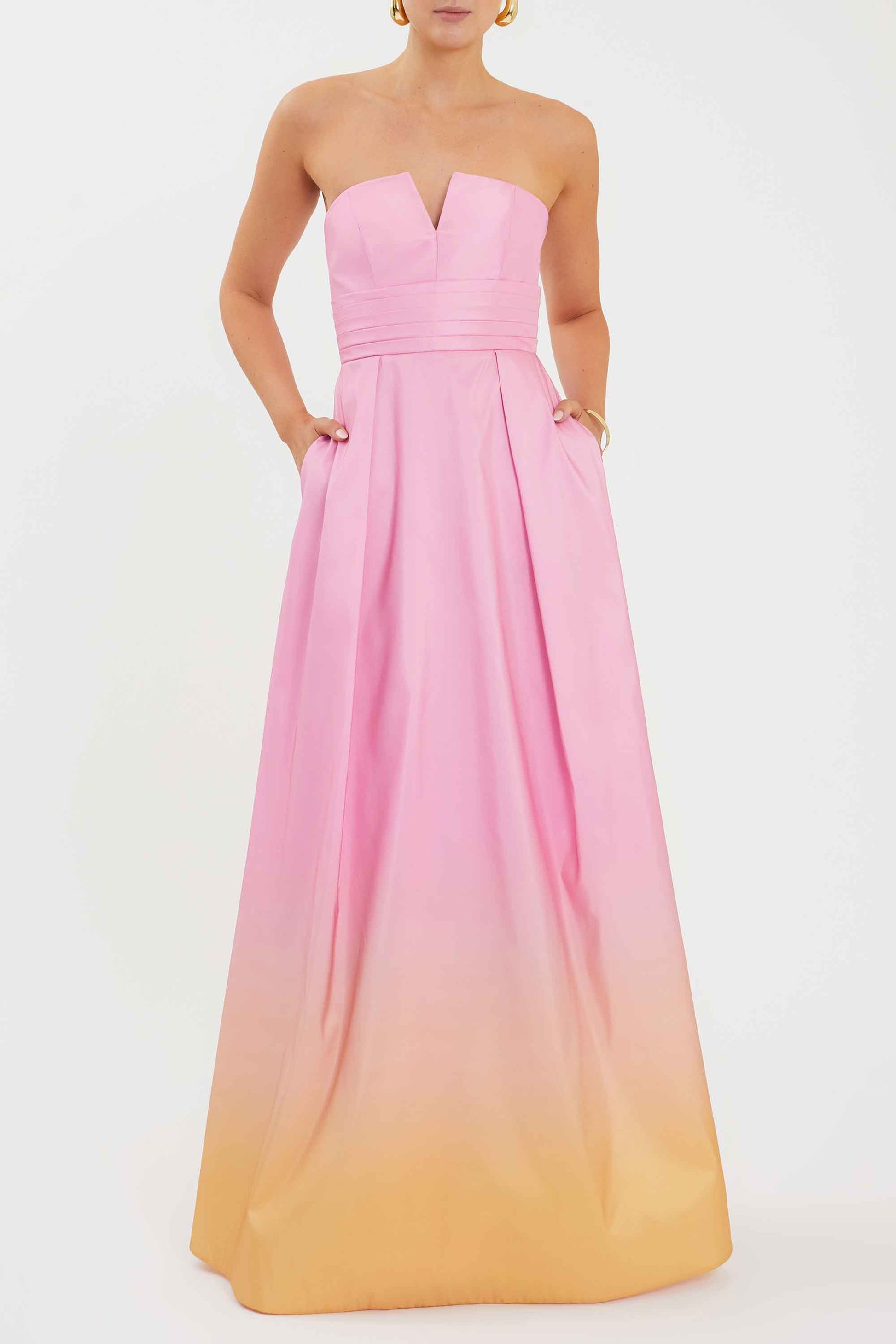 The Bambina Gown is a striking embodiment of Italy's coastal allure and dynamic spirit. Crafted from ombre taffeta, it features a strapless V-wire neckline that exudes sophistication. The fitted bodice, complete with boning, accentuates the figure, cinching the pleated waist elegantly. The A-line skirt showcases inverted tucks and a dramatic crinoline hem, adding a touch of drama. With a secure zip fastening at the back and thoughtful lining, this gown seamlessly combines style and comfort, making it a perfect choice for experiencing the enchantment of Italian seascapes in this remarkable collection.