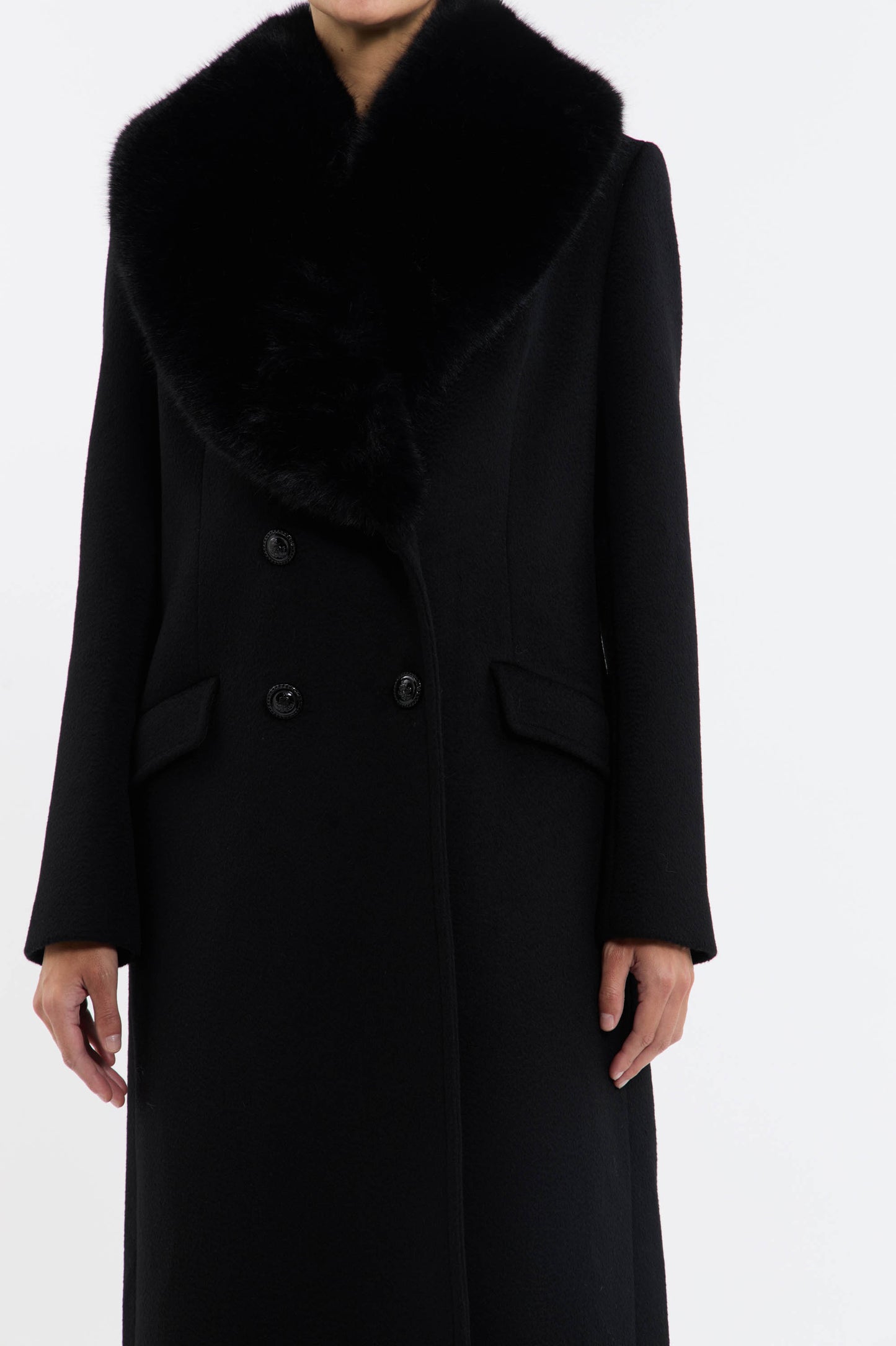 The Biera Coat in black will become your next wardrobe staple for many years. Crafted from wool, this coat features a boxy silhouette, with elements of embossed dome buttons and a removable faux fur trim to add a touch of luxury. For convenience, flap pockets and a back vent enhance the coats functionality and style.
